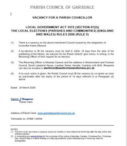 Council Business Vacancy for a Parish Councillor Please see notice for full details. Thank you. Published: 25 March 2026 Recent News Hawes Junction/Mount Zion Methodist Chapel Little White Bus Vacancy for a Parish Councillor Dales Bus 832 Introducing a new Summer 2026 Service Season’s Greetings Popular Links When is the next council meeting?